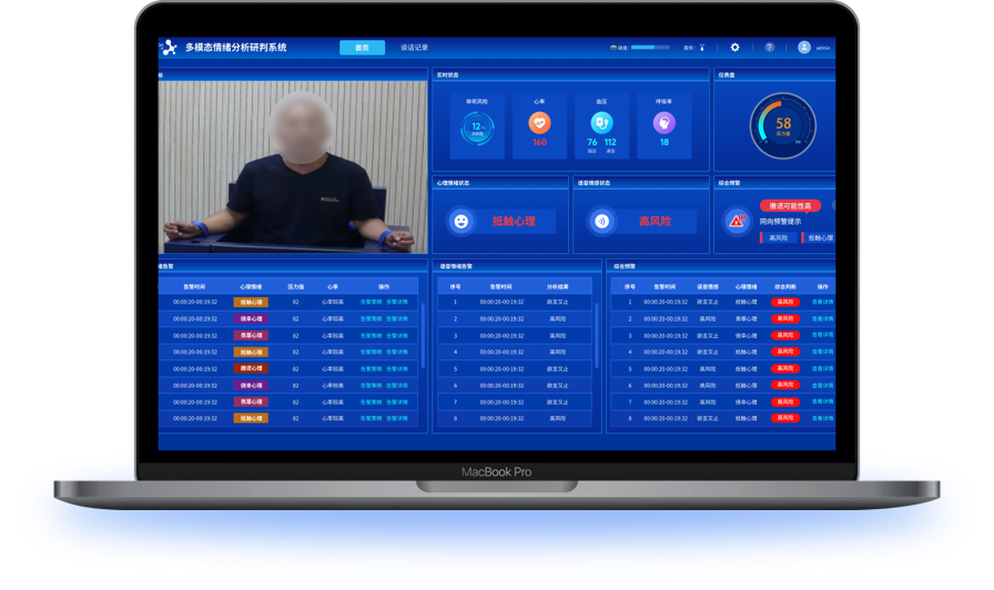 全程记录与追溯:系统通过详尽记录谈话中的情绪变化、生理指标及告警多维度数据,确保每一个细节都可追踪和验证,实现过程透明化。